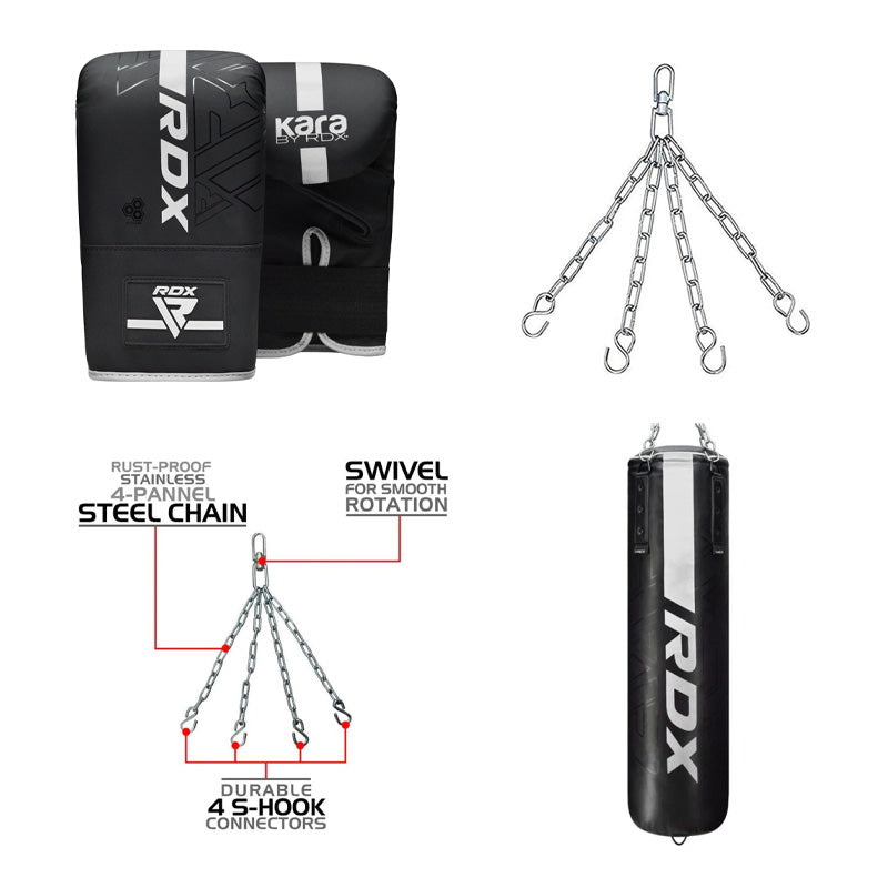RDX présente maintenant un sac de frappe de qualité supérieure doté de fonctionnalités améliorées pour une oscillation et une résistance optimales. Ce sac cylindrique, conçu pour être frappé par les pratiquants, est maintenant disponible avec des fonctionnalités améliorées. Le sac de frappe RDX Superior résiste non seulement aux entraînements les plus exigeants, mais offre également une dispersion de force maximale. Les poids des sacs de frappe préremplis sont les suivants :